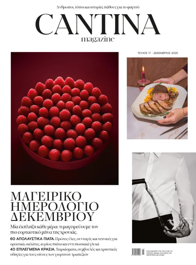 Ένα μαγειρικό καλεντάρι με συνταγές για κάθε μέρα του μήνα, καθηµερινές, κυριακάτικες και γλυκές, μαζί με ένα μεγάλο αφιέρωμα στα κρασιά των γιορτινών τραπεζιών, κυριαρχούν αυτόν τον μήνα στις σελίδες του Cantina. Υλικά εποχής, φρέσκες ιδέες, αρώματα που ζεσταίνουν το σπίτι και υφές που θυμίζουν ότι το πιο όμορφο τραπέζι είναι αυτό που μας φέρνει κοντά. Φορέσαµε τα καλά µας λοιπόν για να υποδεχθούµε με τους αναγνώστες τις γιορτές του Δεκεµβρίου….