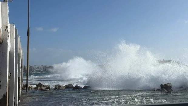 Οι ισχυροί νοτιάδες που πνέουν, «μαστιγώνουν» το νησί των Κυκλάδων, με τα κύματα να φτάνουν μέχρι και τα 3 μέτρα.