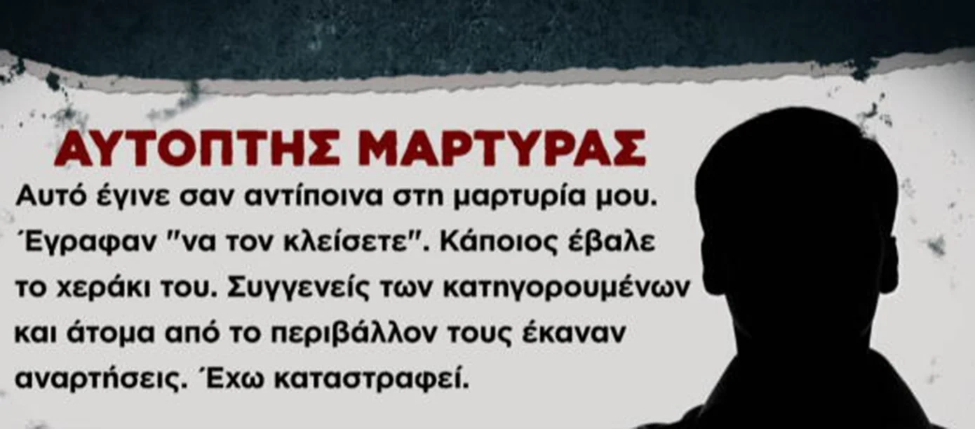 Μεταξύ άλλων ο αυτόπτης μάρτυρας ανέφερε: «Αυτό έγινε σαν αντίποινα στη μαρτυρία μου. Έγραφαν να τον κλείσετε. Κάποιος έβαλε το χεράκι του. Συγγενείς των κατηγορουμένων και άτομα από το περιβάλλον τους έκαναν αναρτήσεις. Έχω καταστραφεί».