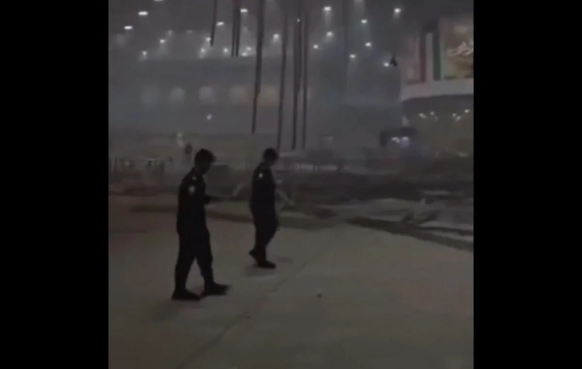 Video footage shows the moments immediately after the drone strike on Kuwait International Airport with passengers and airport staff rushing through terminal corridors.