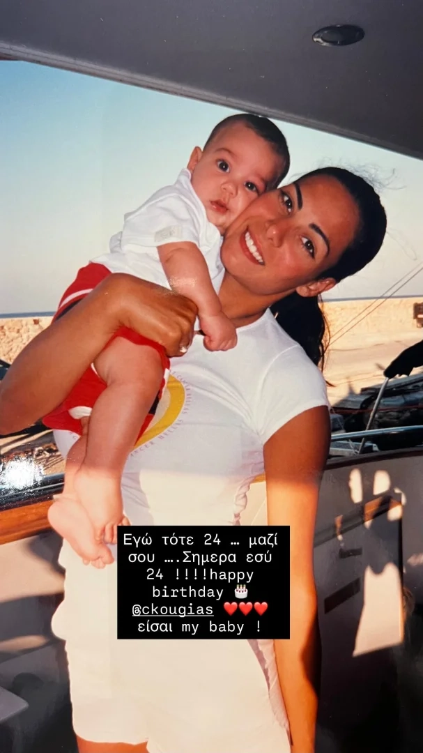 Στο story που δημοσίευσε, η Εύη Βατίδου απεικονίζεται να κρατά στην αγκαλιά της τον μικρό τότε Χρίστο, όντας η ίδια στην ηλικία των 24 ετών. Με αφορμή το γεγονός ότι ο γιος της φτάνει σήμερα ακριβώς σε αυτό το ηλικιακό ορόσημο, η μητέρα του έγραψε με νόημα: