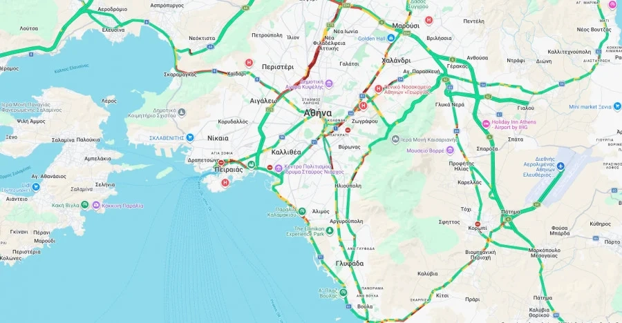 Όσον αφορά την κίνηση αυτήν την ώρα στους δρόμους της Αττικής, ο Κηφισός και η Κηφισίας είναι ξανά στο «κόκκινο», ενώ, αργές ταχύτητες παρατηρούνται και στο κέντρο της Αθήνας, τον Καρέα, τους δρόμους πέριξ του λιμανιού του Πειραιά και την Παραλιακή (στο ύψος του Αλίμου).