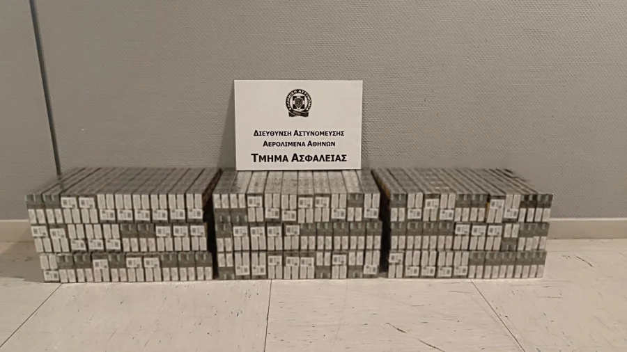 Η γυναίκα εντοπίστηκε αμέσως μετά την άφιξή της με πτήση από την Τουρκία, στο πλαίσιο στοχευμένων ελέγχων για την καταπολέμηση του λαθρεμπορίου καπνικών προϊόντων. Κατά τον έλεγχο των αποσκευών της, οι αστυνομικοί βρήκαν τα 900 πακέτα τσιγάρα, τα οποία δεν έφεραν την απαραίτητη ταινία ειδικού φόρου κατανάλωσης.