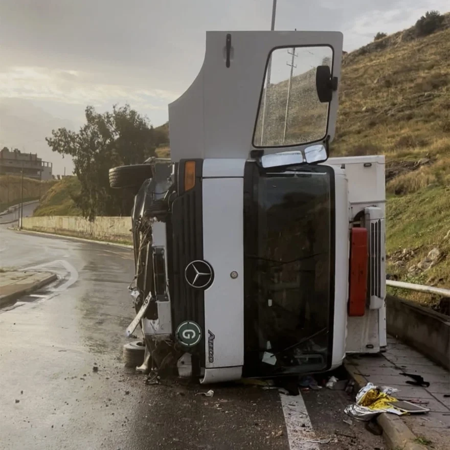 Την ατυχή γυναίκα ανέσυραν νεκρή από το αναποδογυρισμένο φορτηγό 8 Πυροσβέστες που επιχείρησαν στο σημείο με 3 οχήματα.
