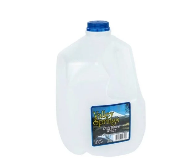 - 3,8 λίτρα Valley Springs 100% Natural Bottled Water «Infant Water. Not sterile.» UPC 0 31193-01401