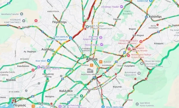 Αυξημένη κίνηση σημειώνεται, στη Λεωφόρο Αθηνών, στην Κατεχάκη, στην Αλεξάνδρας, στη Μεσογείων, στην Κηφισίας, στη Βασ. Κωνσταντίνου, στη Λ. Συγγρού. Παρόμοια η κατάσταση και στους δρόμους γύρω από το λιμάνι του Πειραιά.