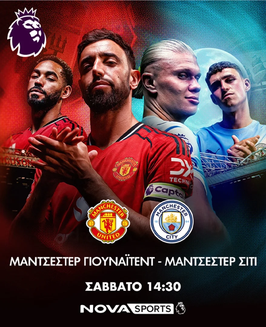 H Premier League, το κορυφαίο πρωτάθλημα στον κόσμο και τη φωνή του Χρήστου Σωτηρακόπουλου στα κανάλια Novasports, συνεχίζεται με την 22η αγωνιστική και τα φώτα πέφτουν στο ντέρμπι του Μάντσεστερ, Γιουνάιτεντ – Σίτι (17/1, 14:30). Από το υπόλοιπο πρόγραμμα ξεχωρίζουν οι αγώνες Τσέλσι – Μπρέντφορντ (17/1, 17:00), Λίβερπουλ – Μπέρνλι (17/1, 17:00), Νότιγχαμ Φόρεστ – Άρσεναλ (17/1, 19:30). Η Premier League θα πλαισιωθεί με τις εκπομπές «Premier League Kick Off» και «Premier League The Show» με τον Άγγελο Στυλιάδη και τον Γιώργο Σαμαρά.