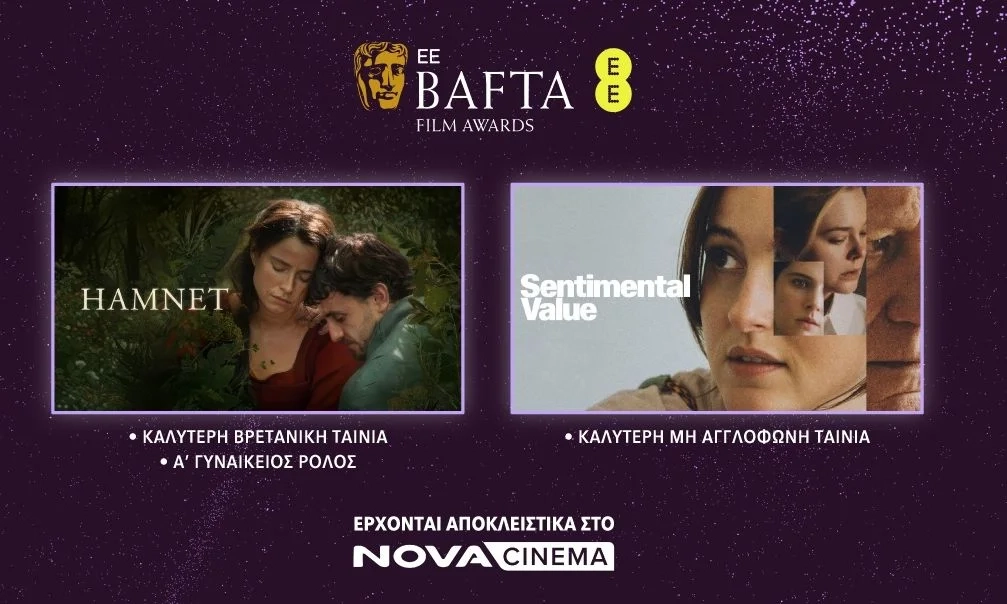 Η Nova, συνεχίζει να πρωταγωνιστεί στα μεγαλύτερα διεθνή βραβεία, αποσπώντας τρία βραβεία στα φετινά 2026 EE BAFTA Film Awards για ταινίες που θα προβληθούν αποκλειστικά από τα κανάλια της, τα Novacinema, τον απόλυτο κινηματογραφικό προορισμό!