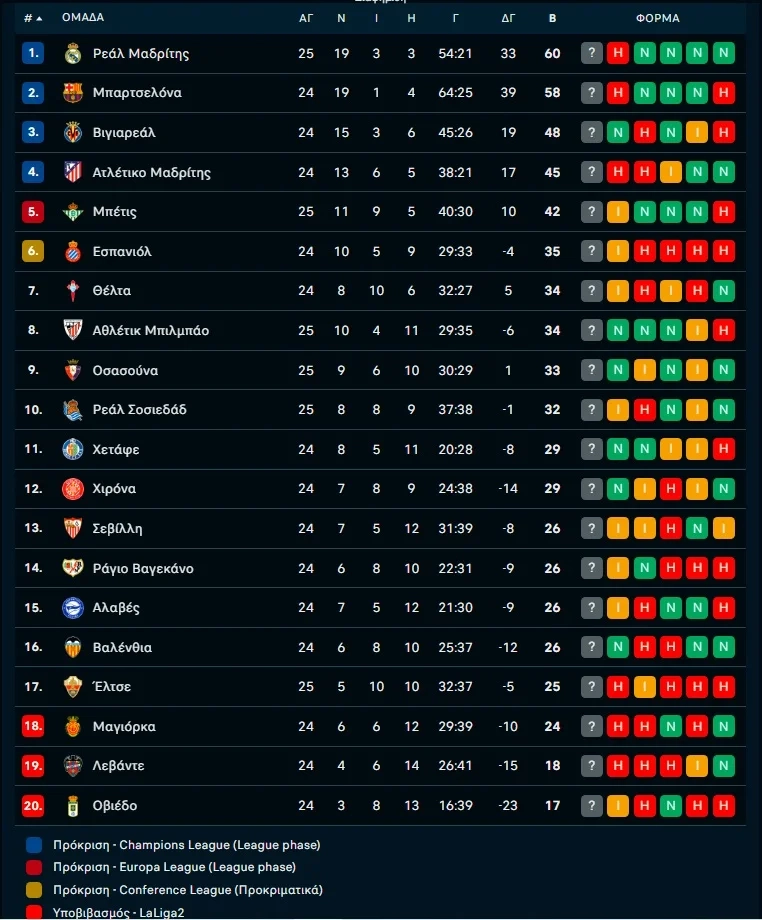 Η ομάδα του Αρμπελόα παρέμεινε στους 60 βαθμούς, με την «αιώνια» αντίπαλό της να έχει 58, συνεπώς με «τρίποντο» σε λίγες ώρες, θα προσπεράσει ξανά στην κορυφή της La Liga, έστω και με «βραχεία κεφαλή».