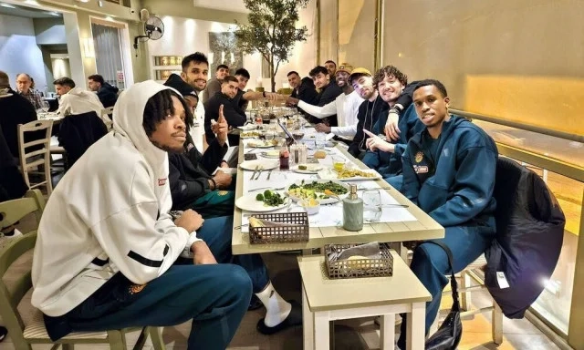 Με την ευκαιρία της παρουσίας στην πόλη, όπως συνηθίζει ο Κώστας Σλούκας παρέθεσε δείπνο στην ομάδα. Παίκτες, τεχνικό τιμ και όλα τα μέλη της αποστολής, δείπνησαν στο εστιατόριο «Γλυκάνισος» με πρωτοβουλία του αρχηγού των «πράσινων».