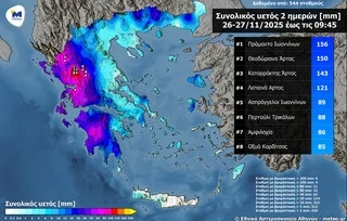 Το έκτακτο δελτίο επικίνδυνων καιρικών φαινομένων επικαιροποίησε η ΕΜΥ, σύμφωνα με τα τελευταία προγνωστικά στοιχεία. Ειδικότερα, το καιρικό σύστημα με το όνομα Adel θα επηρεάσει σήμερα Πέμπτη (27-11-25) και αύριο Παρασκευή (28-11-25) με βροχές και καταιγίδες όλη σχεδόν τη χώρα. Τα φαινόμενα σε πολλές περιοχές της δυτικής και της βόρειας Ελλάδας καθώς και στο ανατολικό Αιγαίο θα είναι ισχυρά και θα συνοδεύονται από τοπικές χαλαζοπτώσεις και κατά διαστήματα από πολύ ισχυρούς ανέμους.