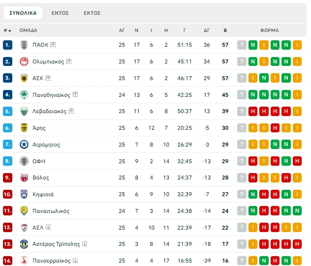ΠΑΟΚ, Ολυμπιακός και ΑΕΚ ολοκλήρωσαν την 25η αγωνιστική της Stoiximan Super League όντας ισόβαθμοι στους 57 βαθμούς και η… μάχη για τον τίτλο έχει πάρει «φωτιά» για τα καλά.
