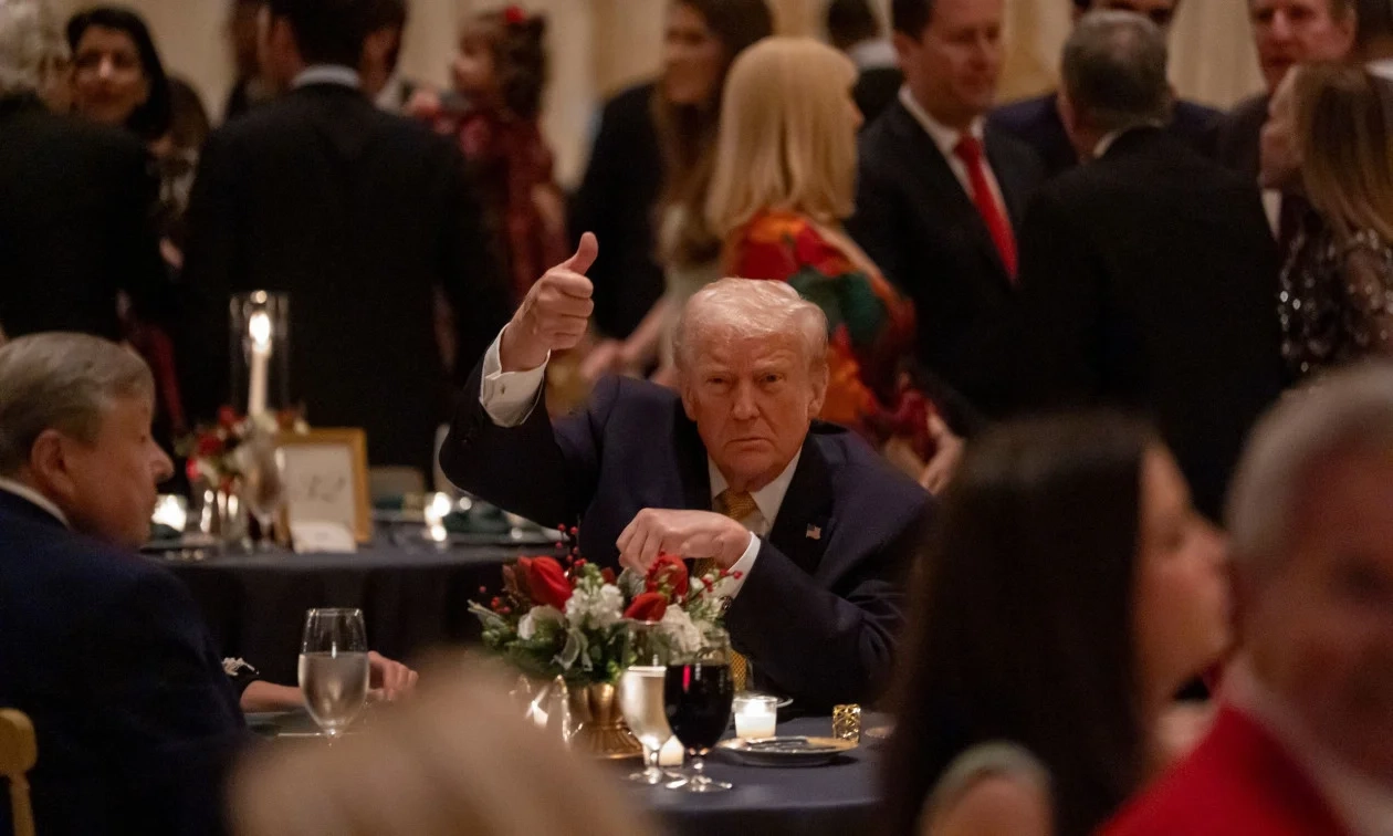 Ο Ντόναλντ Τραμπ και η πρώτη κυρία Μελάνια Τραμπ συνομίλησαν με παιδιά από την κατοικία τους στο Μαρ-α-Λάγκο για πάνω από 20 λεπτά, καθώς ήταν καθισμένοι σε πολυθρόνες με χρυσές λεπτομέρειες κοντά σε ένα χριστουγεννιάτικο δέντρο.