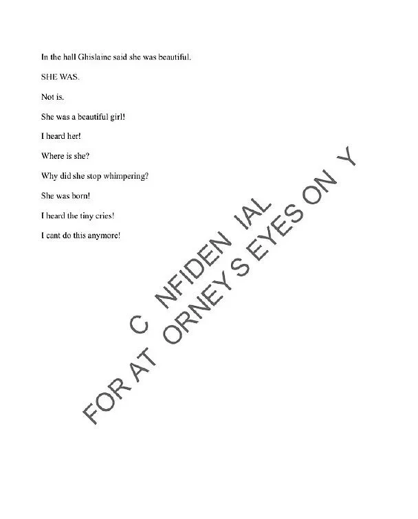 Η γυναίκα περιγράφει με δραματικό τρόπο τη γέννα, αναφέροντας ότι υπέστη έντονο πόνο και ότι η Μάξγουελ της ζητούσε να τον αγνοήσει. Υποστηρίζει ότι είδε για λίγες στιγμές το νεογέννητο πριν της το πάρουν.
